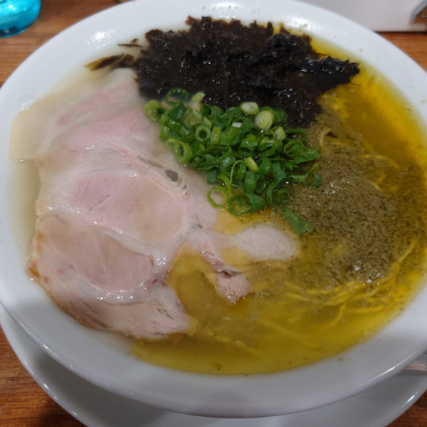 東京都杉並区阿佐谷南3-10-8マップで見る塩ラーメンの鶏清湯ベースに香味油の香りがビシッと締まるスープは複雑な旨味が穏やかに主張。麺は全粒粉入加水高目の細スト麺でパツパツ食感。こざっぱりした店内のレトロな山水スピーカーから流れる音楽を楽しみながら啜るラ